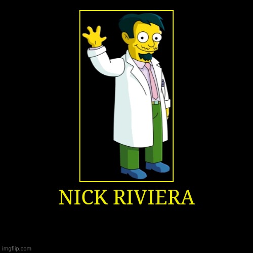 dr nick riviera gif. Discover and share featured doctor nick riviera gifs on gfycat. This gif is about dr nick riviera,listen,hospital,homer simpson,season 4,episode 18,doctor . Just click the download button and the gif from the and dr nick rivera collection will be downloaded to your device. Giphy is how you search, share, discover, and create gifs. Explore and share the best dr nick riviera gifs and most popular animated gifs here on giphy.