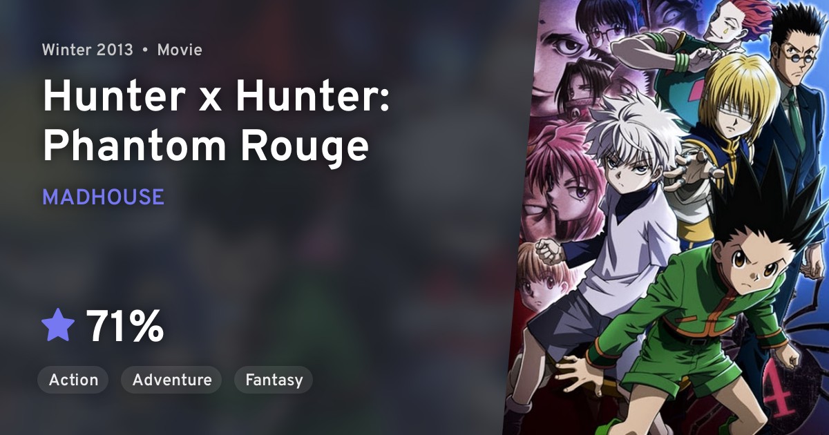 hunter x hunter movie phantom rouge. Kurapika became a hunter to take vengeance on the phantom troupe, a gang of thieves who massacred his clan. Phantom rouge follows the boys' quest to locate their friend's eyes and catch the thief, causing them to delve deep into phantom . Hunter x hunter movie 1: Free popular animes are streaming now. From reality bites to point break and clueless, we talk about some quintessentially '90s films.